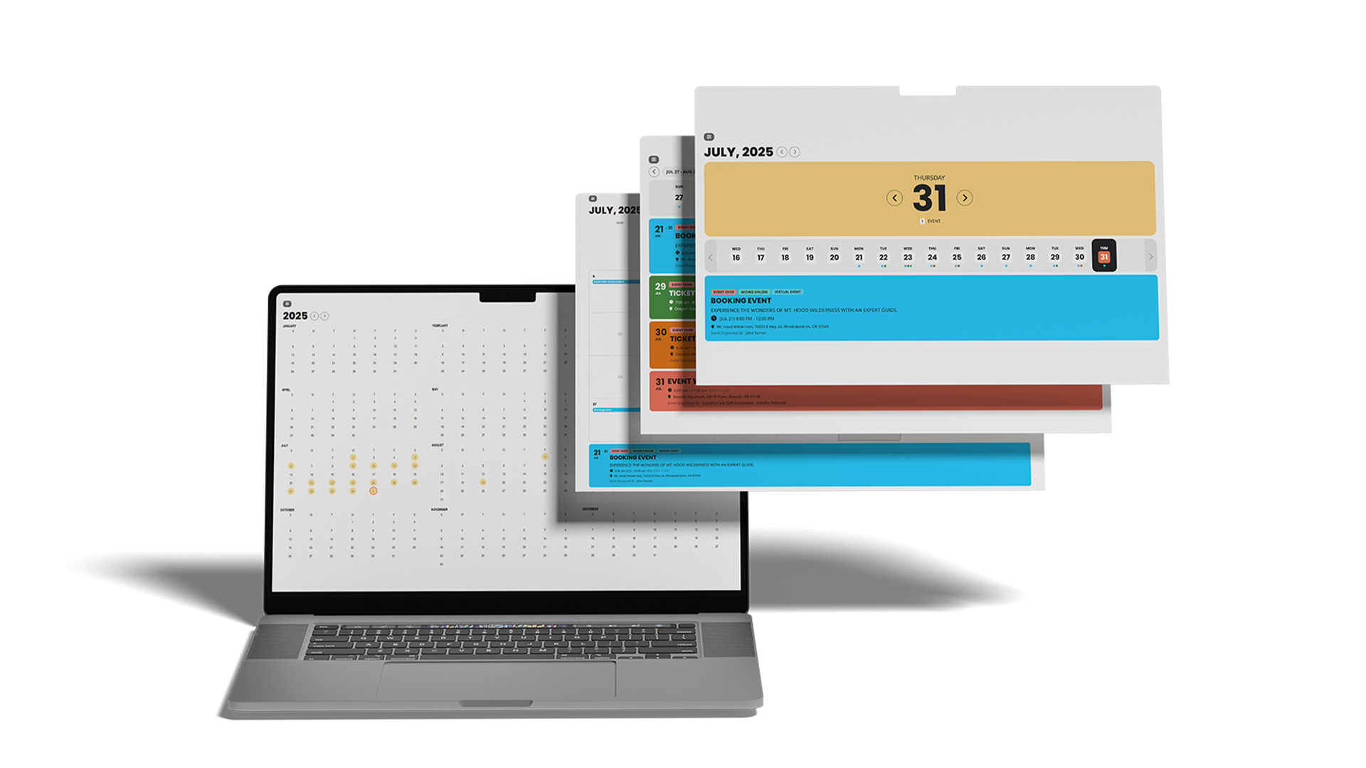 Để tối ưu hóa trải nghiệm người dùng, ứng dụng GUD Event cung cấp các bố cục lịch sự kiện đa dạng. Ngoài các chế độ xem theo ngày, tuần, năm, GUD Event còn có 04 bố cục lịch theo tháng khác nhau, cho phép bạn tùy chỉnh hiển thị thông tin sự kiện một cách trực quan và hiệu quả.
